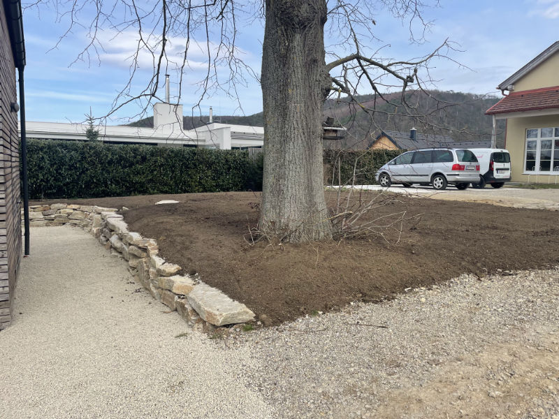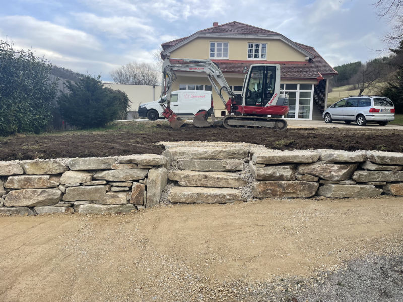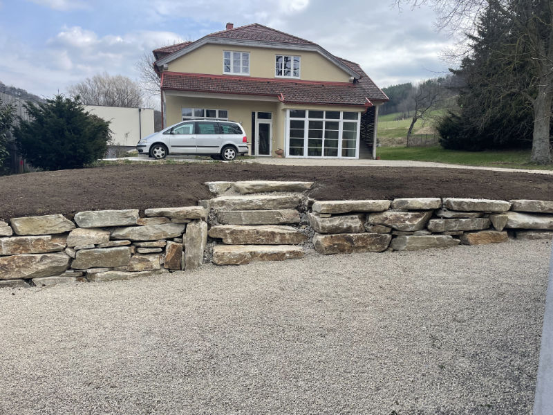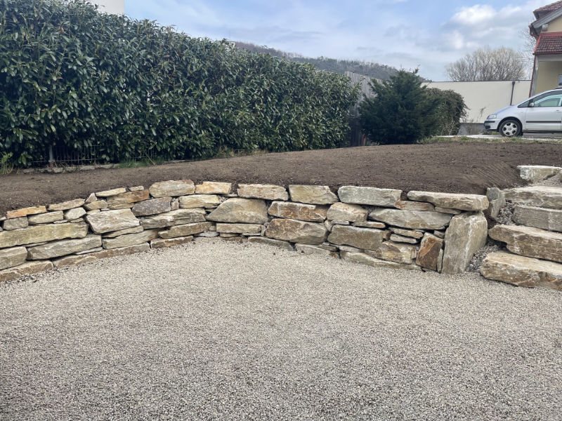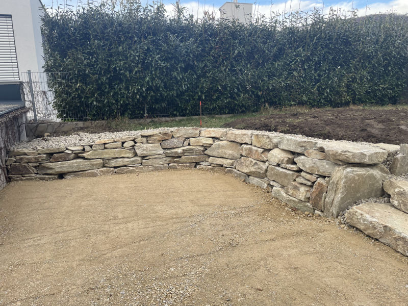 Hier haben wir eine Mauer aus Natursteinen angelegt.